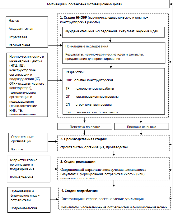 3. Методология принятия решений в инновационном менеджменте Методология принятия решений в инновационном менеджменте базируется на интеллектуальном продукте, который представляет собой, как мы уже отмечали, потенциал системы знаний науки управления о методах воздействия на людей в процессе инновационной деятельности, не имеющий рыночной стоимости. Фундаментальные теоретические исследования (ФТИ) и поисковые научно-исследовательские работы (НИР) образуют потенциал знаний для инновационной деятельности. Все ФТИ начинаются, как правило, с постановки научной проблемы. Выдвижение гипотезы или группы гипотез есть путь движения познания к новым результатам. Если гипотеза соответствует достоверному знанию и не содержит формально-логических противоречий, она превращается в теоретически разработанное знание, теоретическое воспроизведение действительности, а в отдельных случаях приводит к открытию. Ученые стремятся использовать новое научное знание для практической реализации по удовлетворению потребностей общества. С этой исходной позиции выполняются все поисковые НИР. При проведении поисковых НИР постановка проблемы отождествляется с выдвижением научно-технической идеи о материализации теоретического знания. Важнейшим результатом поисковых НИР является научное обоснование методов использования на практике теоретических знаний и открытий. В целостной системе инновационной деятельности прикладные исследования и разработки проводятся после выполнения поисковых НИР. По своей сущности прикладные НИР могут предшествовать опытно-конструкторским работам (ОКР) или выполняться параллельно с ними, после них, а также иметь самостоятельное направление (например, в области организации производства, по проектированию систем управления и др.). Основной целью прикладных НИР является определение количественных характеристик метода удовлетворения той или иной потребности экономики общественного производства. Количественное подтверждение они находят в процессе выполнения ОКР. Основные этапы инновационных процессов и источники их финансирования Непосредственно инновационный процесс начинается с этапа проведения поисковых НИР. Завершаются поисковые НИР обновлением и экспериментальной проверкой новых методов удовлетворения общественных потребностей. Они проводятся как в академических учреждениях и вузах, так и в крупных научно-технических организациях промышленности персоналом высокой научной квалификации и финансируются в основном из государственного бюджета и на безвозвратной основе. На втором этапе инновационного процесса проводятся прикладные НИР. Их выполнение связано с высокой вероятностью получения отрицательных результатов. Поэтому возникает риск потерь при вложении средств в проведение прикладных НИР, когда инвестиции в инновации имеют рисковый характер и называются рискоинвестициями. Прикладные НИР выполняются во многих научно-технических организациях промышленности и вузах с различными тематическими направлениями исследований и разработок. Они финансируются как за счет средств государственного бюджета (по государственным научно-техническим программам, а также на конкурсной основе), так и за счет отдельных заказчиков в лице крупных организаций промышленности, акционерных общест