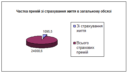 Рисунок 3 – Частка премій зі страхування життя в загальному обсязі страхових премій у 2007 році