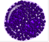 Рис.4. Эозинофильный гранулоцит Установлена роль эозинофилов в реакциях на чужеродный белок, в аллергических и анафилактических реакциях, где они участвуют в метаболизме гистамина, вырабатываемого тучными клетками. Гистамин повышает проницаемость сосудов, вызывает развитие отека тканей; в больших дозах может вызвать шок со смертельным исходом. Эозинофилы способствуют снижению содержания гистамина в тканях различными путями. Они разрушают гистамин с помощью фермента гистаминазы, фагоцитируют гистаминсодержащие гранулы тучных клеток, адсорбируют гистамин на плазмолемме, связывая его с помощью рецепторов, и, наконец, вырабатывают фактор, тормозящий дегрануляцию и освобождение гистамина из тучных клеток. Специфической функцией эозинофилов является антипаразитарная. При паразитарных заболеваниях (гельминтозы, шистосомоз и др.) наблюдается резкое увеличение числа эозинофилов - до 90 % от общего числа лейкоцитов. Эозинофилы убивают личинки паразитов, поступившие в кровь или органы (например, в слизистую оболочку кишки). Они привлекаются в очаги воспаления хемотаксическими факторами и прилипают к паразитам благодаря наличию на них обволакивающих компонентов комплемента. При этом происходят дегрануляция эозинофилов и выделение главного основного белка, оказывающего антипаразитарное действие. Таким образом, эозинофилы являются первой линией защиты против паразитов. Они участвуют в убийстве этих агентов при выделении содержимого гранул после активации антителами и комплементом. Активация сочетается со слиянием гранул, их выделением, повышением скорости метаболизма и экспрессией рецепторов Fc и комплемента. Эозинофилы находятся в периферической крови менее 12 ч и потом переходят в ткани. Их мишенями являются такие органы, как кожа, легкие и гастроинтестинальный тракт. Изменение содержания эозинофилов может наблюдаться под действием медиаторов и гормонов: например, при стресс-реакции отмечается падение числа эозинофилов в крови, обусловленное увеличением содержания гормонов надпочечников. Базофилы (базофильные лейкоциты, или базофилы). Количество базофилов в крови составляет 0-0,06 109/л, или 0-1 % от общего числа лейкоцитов. Их диаметр в мазке крови равен 11-12 мкм, в капле свежей крови - около 9 мкм (рис.5). Ядра базофилов сегментированы, содержат 2-3 дольки; в цитоплазме выявляются все виды органелл - эндоплазматическая сеть, рибосомы, аппарат Гольджи, митохондрии, актиновые филаменты. Характерно наличие специфических крупных метахроматических гранул, часто закрывающих ядро, размеры которых варьируют от 0,5 до 1,2 мкм.
