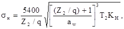 Тчр (970) = 4204 Нм. nчр = 3750/(0,95х4204)= 0,938 Для черв’ячного редуктора перевантаження не має.У відповідності з даними [7] використаний черв’ячний редуктор Ч250 з u = 50 має наступне співвідношення основних параметрів: ¾ міжосьова відстань aw = 250 мм, ¾ передаточне число u = 50, ¾ число зубців черв’ячного колеса Z2 = 50, ¾ число заходів черв’яка Z1 = 1, ¾ осьовий модуль m = 8 мм, ¾ коефіцієнт діаметра черв’яка q = 20, ¾ коефіцієнт зміщення черв’яка х = 0. Визначаємо діючі контактні напруження на зубцях колеса за формулою джерела [9] на протязі першого та другого періодів циклу: