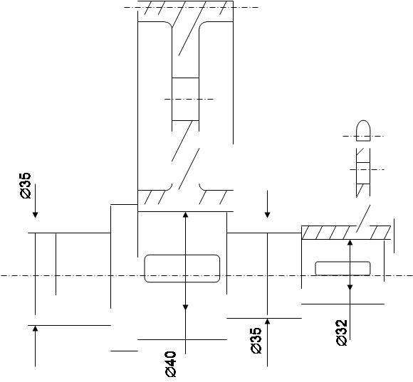 Принимаем dв2 = 32, диаметр вала под подшипники dп2 = 35м, под зубчатым колесом dк2 = 40. Диаметр остальных участков валов назначаем исходя из конструктивных соображений при компоновке редуктора. Конструкция ведомого вала