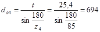 Для свободного провисания цепи предусматриваем возможность уменьшения межосевого расстояния на 0,4%, т.е. на 1265 · 0,004 » 5 мм. Определяем диаметры делительных окружностей звездочек по формуле 7.34 [1]