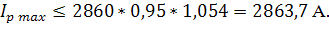 По справочнику выбираем шины, алюминиевые 2 х 100х10 продолжительный допустимый ток 2860 А. Произведем проверку по нагреву длительно допустимым током в нормальном режиме.