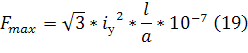 Максимальное усилие действующее на проводник средней фазы: