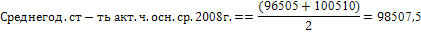 Примечание. Источник: собственная разработка Из данных таблицы 4.3 следует, что основную долю основных средств в отчетном периоде составляют непроизводственные фонды. Наибольший удельный вес – 56,5% на начало года и 46,4% на конец года составляет их пассивная часть. Значительная доля пассивной части основных средств косвенно свидетельствует о благополучном стабильном финансовом состоянии предприятия. Наименьший удельный вес в структуре основных средств в отчетном периоде составляют сооружения – 1,8% и производственный и хозяйственный инвентарь – 3,8%. Для дальнейших расчетов необходимо рассчитать среднегодовую стоимость основных средств и среднегодовую стоимость их активной части (таблица 4.4). Таблица 4.4 - Расчет среднегодовой стоимости основных средств и среднегодовой стоимости их активной части Гомельского пассажирского участка за 2008 - 2009 г.