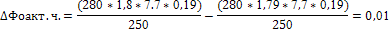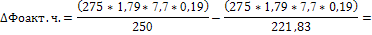 Расчет влияния факторов осуществляется способом абсолютных разниц: