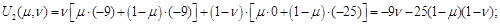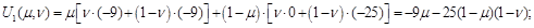 В чистых стратегиях равновесия в данной игре нет. b) Найдем равновесие в смешанных стратегиях. Предположим, что первый игрок с вероятностью µ играет стратегию У, соответственно с вероятностью (1 - µ) – стратегию Н. Второй игрок с вероятностью ν играет стратегию У, а с вероятностью (1 - ν) - стратегию Н. Функции выигрыша игроков: