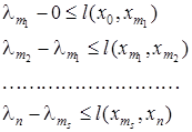этого пути определяется как Естественный интерес представляет нахождение кратчайшего пути между двумя заданными вершинами x и y. Алгоритм Форда отыскания кратчайшего пути . Будем предполагать, что все расстояния в графе положительны. (Если это не так, то ко всем весам можно всегда добавить такую константу, что все эти веса станут положительными). Пусть мы ищем путь от вершины x 0 к вершине xn . Будем каждой вершине xi ставить в соответствие некоторое число li по следующим правилам. 1° Положим l0 = 0, li = ¥ (достаточно большое число) для "i > 0. 2° Ищем в графе дугу (xi , xj ) удовлетворяющую следующему условию lj - li > l (xi , xj ), (1) после чего заменяем lj на
