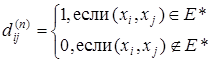 и 4°. Выписать кратчайший путь между Пункты 3° и 4° предполагают рекурсивное обращение к рассмотренному алгоритму. С задачей определения кратчайших путей в графе тесно связана задача транзитивного замыкания бинарного отношения. Напомним, что бинарным отношением на множестве Х называется произвольное подмножество E ÌX ´X . Транзитивным называется отношение, удовлетворяющее следующему условию: если (x , y ) ÎE и (y , z ) ÎE , то (x , z ) ÎE для всех x , y , z ÎX . Отметим, что бинарное отношение можно однозначно представить орграфом G (X , E ). Теперь для произвольного отношения Е определим новое отношение Е * следующим образом E * = {(x , y ) | если в G (X , E ) существует путь ненулевой длины из x в y }. Легко проверить, что Е * - транзитивное отношение. Кроме того, Е * является наименьшим транзитивным отношением на Х в том смысле, что для произвольного транзитивного отношения F ÉE выполняется E * ÉF . Отношение Е * называется транзитивным замыканием отношения Е . Если отношение Е представить в виде графа G (X , E ) в котором каждая дуга имеет вес 1, то транзитивное замыкание Е * можно вычислить с помощью алгоритма Флойда. При этом надо учесть, что (xi