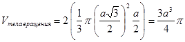 Ответ: Задача 3.3. Вычислить объем тела, полученного вращением октаэдра относительно оси, проходящей через центры его противоположных граней, если ребро октаэдра равно а. Решение: