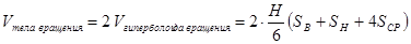 В данном случае прямые (образующие поверхности) скрещиваются с осью вращения, значит, в результате вращения получается гиперболическая поверхность. По формуле Симпсона