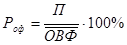 - характеризує обсяг виробленої продукції на одиницю спожитої вартості основних засобів. Розраховується за формулою: Рентабельність (Р)