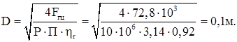 По даному зусиллю на штоку визначаємо необхідний діаметр поршня гідроциліндра по формулі: