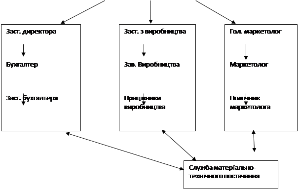 Рис. 2. Внутрішнє середовище фірми Другою концепцією є концепція вдосконалення виробництва – фірма основну увагу приділятиме зниженню витрат на виробництво, а саме буде зроблена закупка нового більш сучасного обладнання для більш автоматизованої праці. Згодом воно окупиться і буде впливати безпосередньо саме на процес виробництва, а також для подальшого зменшення цін на реалізацію фірма шукатиме поставників які розташовані ближче ніж попередні для зменшення затрат на транспортування продукції яка необхідна для виробництва. 1.2 Зовнішнє середовище фірми До зовнішнього середовища належать мікро- і макросередовище. Мікросередовище – представлена силами, які мають безпосереднє відношення до фірми та її можливостей по обслуговуванню клієнтів, тобто поставниками, клієнтами, конкурентами і контактними аудиторіями. Макросередовище – представлена силами більш широкого соціального значення, які впливають на мікросередовище такими факторами як демографічного, економічного, політичного, культурного характеру. 1.2.1 Мікромаркетингове середовище Постачальниками сировини для виробництва є: «Миколаївський овочевий завод» що розташований в м. Миколаєві, Променева 34; «Одеський хорчо-промисловий завод» – Одеська _н._., м. Ізмаїл, _н._. Космічна 102. Постачальниками обладнання є «Харківобладнання», що постачають обладнання багатьом фірмам, які знаходяться не тільки на території Харківської області, а й по всій Україні. Розрахунки з постачальниками будуть відбуватись за допомогою Промінвест банку. Маркетологи фірми будуть проводити вивчення ринку та робити аналізи доцільності виходу товару саме на тій території на яку направлена реалізація товару. Рекламними питаннями фірми буде займатись Київське рекламне агентство «Анастасія». Реклама буде розміщена на телебаченні та на рекламних щитах в тих містах куди відбувається збут товару. Оптовими клієнтами є супермаркети міст збуту та оптові бази, а кінцевими споживачами є люди, які проживають на території цих міст та їх областей. Взагалі товар спрямований на різні групи населення: різного віку, статі, матеріального достатку. Натуральні соки вживають як діти так і дорослі, як чоловіки так і жінки, як середнього достатку так і більш матеріально забезпечені. Соки будуть продаватись не тільки в супермаркетах, а й в невеличких магазинах, кіосках та _н., що робить товар більш доступним для споживача. Сік також буде продаватись Харківському підприємству «Хладік», яке займається виготовленням морозива та заморожених соків. Фірма «Хладік» буде використовувати соки «Наша ягідка» для виготовлення наповнювачів та добавок в морозиво, а також для виготовлення заморожених соків. Продаж соків буде також відбуватись в державний дитячий садок «Теремок», що розташований в м. Харкові, _н._. Тракторобудівників 37. В цю державну установу сік буде доставлятись об’ємом 0.25 л, кожні три дні. Також реалізація товару буде відбуватись за межі України, а саме в м. Грайвороні Бєлгородської _н._. Згодом фірма намагатиметься налагодити зв’язок постачання в самому місті Бєлгороді та сусідній області Воронежській. Схема всіх клієнтів фірми наведена у рис. 3