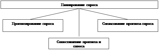 Рис.1. Компоненты процесса планирования Прогнозирование спроса - процесс генерации предварительного сбытового плана, выполняемый на основе различных статистических методов прогнозирования. При этом не учитываются производственные и закупочные ограничения. Прогнозирование осуществляется посредством комплексных бизнес-процессов с привлечением групп сотрудников из различных подразделений. Оно является первым шагом планирования спроса и начинается с составления базового прогноза. Базовый прогноз уточняется с использованием информации, поступающей от различных источников (подразделений и руководства компании, ее клиентов и партнеров). Прогноз может быть также скорректирован на основе дополнительной рыночной информации (график запланированных мероприятий (маркетинговые акции и др.), различные влияющие факторы (сезонность, погодные условия и др.), выход на рынок новых и сворачивание производства старых продуктов, влияние деятельности конкурентов). Результатом является согласованный прогноз, который может использоваться как один из базовых наборов данных при тактическом планировании закупок. Согласование прогноза спроса - процесс взаимосогласования сбытового прогноза с производителями, поставщиками, дистрибьютерами и транспортировщиками. Для рассмотрения различных точек зрения на прогноз и нахождения взаимоприемлемого варианта к этому процессу привлекаются внешние контрагенты. Сопоставление прогноза и заказов - процесс, в рамках которого уже принятые сбытовые заказы сопоставляются с прогнозом без учета ограничений для определения степени покрытия прогноза реальными заказами. Эти результаты используются на последующих циклах тактического планирования, учитывающих ограничения по сырью и производственным мощностям. На тактическом уровне запланированные сбытовые потребности получают соответствующие приоритеты, причем подтвержденным заказам отдается наивысший приоритет. Переходя к следующему уровню детализации, можно выделить набор методов планирования спроса, которые могут варьироваться в зависимости от специфики индустрии, конкретного предприятия и поставленных целей. Эти методы также различаются для разных горизонтов прогнозирования вследствие различных структуры, достоверности и доступности исходных данных, продолжительности цикла планирования, имеющегося в распоряжении бюджета, требуемой точности результатов и стабильности рынка. Тем не менее методы планирования являются взаимосвязанными и, использованные последовательно, дают возможность планомерного повышения точности планирования. В ряде случаев возможно их параллельное применение, особенно при выполнении однотипной задачи несколькими подразделениями. Нисходящее прогнозирование используется руководством как отправная точка для ежегодного планирования и определения целей компании. Оно дает возможность оценить и пересмотреть существующие маркетинговые стратегии и планы продаж в аспекте продуктов и каналов сбыта. Как правило, нисходящее планирование проводится на достаточно высоком уровне консолидации в рамках существующих иерархий, не предполагает учета разносторонних мнений и анализа дополнительной информации и отклонений, которые потенциально могут оказать влияние на прогноз. Исходной информацией для нисходя