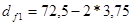 < 20.Определить размеры зубчатой пары: -ширину колеса b=b2 =45,86 мм -ширину шестерни b1 =b2 +5=50,86 мм -высоту ножки зуба ha =m=2,9 мм -диаметры окружностей впадин: