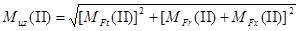 От Ft 1 ,Ft 2 вал изгибается в одной плоскости, а от сил Fr 1 ,Fr 2 и Fx 1 -в плоскости, перпендикулярной первой. Полный изгибающий момент будет равен: в сечении