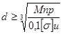 Т – крутящий момент Wρ =0,2d3 – полярный момент сопротивления;