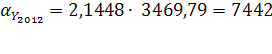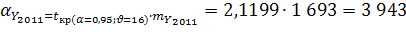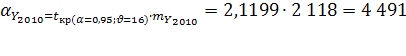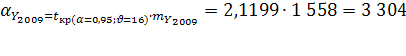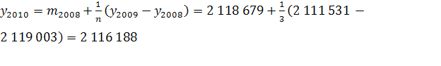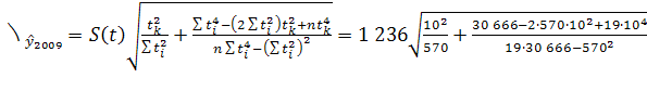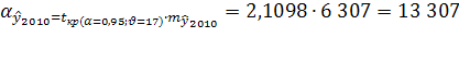 Для искомого прогнозного значения: Таким образом, для прогнозного значения показателя численности населения на 1 января 2010 года определены границы доверительного интервала 2 046 096 – 2 093 718 человек. Аналогично рассчитываем прогнозные значения на 2011-2012 годы: