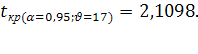Вероятность того, что фактическая ошибка не превысит одного среднего квадратического отклонения, т.е. m равна при нормальном распределении 0,68. Чтобы получить доверительный интервал прогноза линии тренда с большей вероятностью, например с вероятностью 0,95,среднюю ошибку нужно умножить на величину t-критерия Стъюдента для вероятности 0,95 и n - p степеней свободы. Получаем вероятную ошибку:
