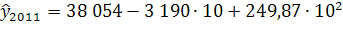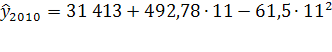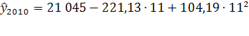 (половина ускорения) к его средней ошибке - это t-критерий Стьюдента: Табличное значение критерия Стъюдента Прогноз по этой модели заключается в подстановке в уравнение тренда номера периода, который прогнозируется. Для 2010 года период времени t = 10,5, прогнозное значение составит: