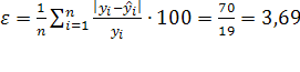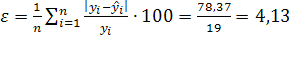 В таблице 2 приведены расчетные данные для определения средней относительной ошибки. Найдем ее значение, разделив на число уровней (n =18):