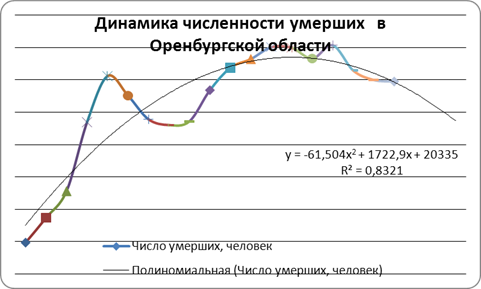 Рис. 4. Динамика числа умерших в Оренбургской области с полиномиальной линией тренда.