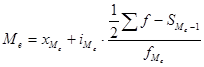 Медиана для интервального ряда распределения рассчитывается по формуле