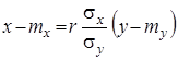 Аналогічний вигляд має і пряма середньоквадратичної регресії на