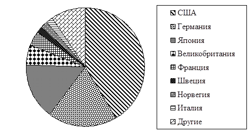 Рис. 1. Доля развитых стран в контроле над передовыми технологиями Бесспорным лидером мирового инновационного процесса являются сегодня США. В 2003 г. на долю США приходилось более 50% крупных нововведений, генерируемых в развитых странах. Страны Западной Европы и Япония, обладая высокой технологической культурой, тем не менее, пока уступают американцам, практически монополизировавшим основные инновационные технологии последних десятилетий. Трудность задачи исследования данного вопроса заключается в отсутствие открытых данных относительно конкретных видов технологических инноваций в мировом пространстве. Однако можно охарактеризовать специализацию деятельности государства с учетом внутренних потребностей и уровня развития. 2.1 Особенности научно-технической политики Государство осуществляет все виды регулирования инновационной деятельности - организационное, экономическое, финансовое, нормативно-правовое (табл. 1). Табл. 1 Регулирование инновационной деятельности со стороны государства