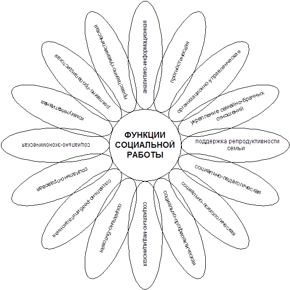 Становление социальной работы как профессиональной деятельности в Республике Беларусь1 Расширение функций социальных служб и социальных работниковСовременная социальная работа носит многопрофильный, межведомственный характер, а это влечет за собой не только необходимость выполнять множество различных функций социальными службами и социальными работниками, но и требует высокого профессионализма кадров, научной постановки всей социальной практики. В научной и учебной литературе по социальной работе существует ряд подходов к определению функций, объемов и методов деятельности социальных служб и социальных работников. И это естественно, ибо единообразие не приносит долгосрочных успехов, а поиск нестандартных решений всегда может вывести на более эффективный путь деятельности. Вместе с тем похожесть человеческих проблем предопределяет наличие наиболее общих закономерностей, технологий и принципов их решения в рамках деятельности социальных служб, а также на контактном уровне. Следуя подходу доктора психологических наук С.А. Беличевой (Россия), выделим основные (наиболее общие) функции социальных работников и органов по труду и социальной защите, ориентированные на решение проблем социальной защиты населения на научно-профессиональном уровне. Это: аналитико-информационная функция; прогностическая функция; организационно-управленческая функция; социально-бытовая функция; функция укрепления семейно-брачных отношений; функция поддержки репродуктивности семьи; социально-профилактическая функция; социально-реабилитационная функция; функция социально-правовой и социально-экономической поддержки; социально-психологическая функция; социально-педагогическая функция и др. (см. рис.4.1).