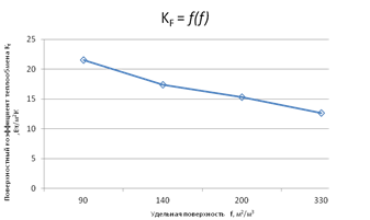 По полученным данным строим графические зависимости поверхностного коэффициента теплообмена и полной высоты насадки КТУ от удельной поверхности насадки