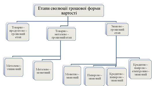 Рис. 1.1 Логіко – історичний розвиток грошової форми вартості