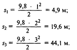 Наконец, из полученного заключения можно вывести бесчисленное множество частных следствий, если рассматривать пути, пройденные телом за 1, 2, 3 секунды:
