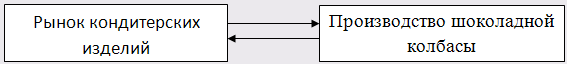 В тоже время связь между ними опосредованная обоюдная, так как чем больше будет потребляться колбаса, тем больше будет расходоваться и продукты, из которых производиться эта колбаса. Технология производства шоколадной колбасы имеет прямую соподчиненную связь с технологией подготовки трудовых кадров, работающих на производстве.