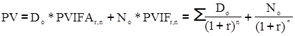 Do — сума відсотків по облігації за кожен рік; No — номінальна вартість облігації; г— середня ставка доходності на ринку або дисконтна ставка; n — число періодів, які залишилися до погашення облігації. Ринкова вартість безвідсоткової облігації: