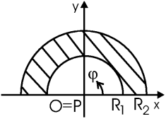 причем φ изменяется в пределах от 0 до π, а r - от R1 до R2. Теперь можно продолжить интегрирование формулы для φ: