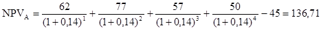Решение: а) проекты поддаются дроблению: Рассчитаем чистый приведенный эффект (NPV) и индекс рентабельности (PI) для каждого проекта: