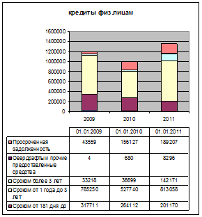 С 2010 года Форус Банк значительно сократил выдачу кредитов предприятиям и организациям, по физ.лицам тоже есть такая тенденция, но к 2011 кредиты возросли, хотя несколько поменялась их структура. Полагаю, что Форус Банк предложил заемщикам со сложным финансовым .положением пролонгацию кредита, так как иначе просрочка бы выросла более значительно.
