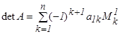 В соответствии с определением детерминант матрицы четвертого порядка может быть выражен через определитель третьего порядка, тот в свою очередь через определители второго порядка и т.д. Число