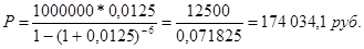 Из приведенной формулы при А = 5 тыс. руб., r = 0,14 и n = 8, получаем: