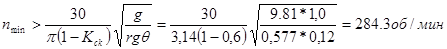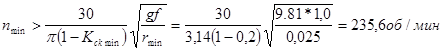 Принимаем минимальное расстояние от центра вращения рабочего органа до центра тяжести клубня 10. Минимальное число оборотов рабочего органа, необходимое для попадания клубня на стенку рабочей камеры определяем: