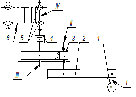 Привод к скребковому конвейеру 1 – двигатель; 2 – клиноременная передача; 3 – цилиндрический редуктор; 4 – упругая муфта с торообразной формой; 5 – ведущие звездочки конвейера; 6 – тяговая цепь. I, II, III, IV – валы, соответственно, - двигателя, быстроходный и тихоходный редуктора, рабочей машины Таблица 1 – Исходные данные