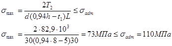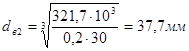 где Т3 =321,7 Нм, вращающий момент на валу τ adm = 30 МПа