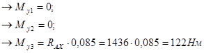 Проверка: ∑Fi =-Fn 1 +RА Y -Fr 1 +RBY =-780+355-1158+1583=0 Изгибающие моменты в сечениях вала