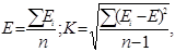 За результат випробування приймають середнє арифметичне модулю пружності зразків, що випробуються, Е (Па) та середнє квадратичне відхилення результатів модулю пружності К (Па), які розраховують за формулами: