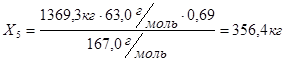 2) во второй реакции расходуется: 167,0 г/м БК - 63,0 г/м 1369,3 кг БК -
