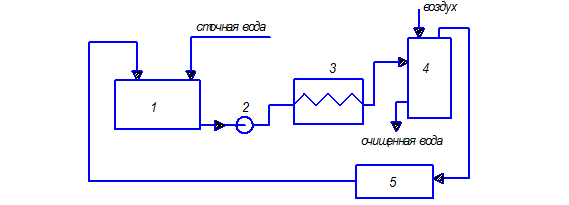 Рис.1 Принципиальная схема установки для очистки сточных вод от серосодержащих соединений окислением под давлением: емкость; насос; теплообменник; трубчатый реактор; сепаратор. 9. Экономическая оценка проектных решенийОрганизация производстваВыбор и обоснование режима работы. Режим работы цеха периодический. Режим работы предполагает работу объекта с остановкой оборудования в выходные и праздничные дни. Предусматривается пятидневная рабочая неделя с двумя сменами по 8 часов, в связи с возможностью прерывания технологического процесса в любое время без ущерба для производства продукции [37]. В данном технологическом процессе не целесообразно останавливать установку на ремонт межцеховых коммуникаций (их ремонт производится во время капитального ремонта). Условия труда работающих - вредные. Расчет фонда времени работы оборудования в году . Годовой фонд времени работы рассчитывается только для основного технологического оборудования, определяющего производственную мощность проектируемого объекта. Расчет проводится путем составления баланса времени работы оборудования в год, в котором последовательно определяют номинальный (режимный) и эффективный фонды времени работы оборудования. Календарный фонд времени Номинальный фонд времени Таблица№34 Баланс времени работы оборудования в году