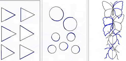 2.2 Характеристика выборки Количество : 15 человек. Дети старшей группы. Возраст : 5-6 лет. 2.3 Ход исследования 1. Анализ научной и психологической литературы по данной теме. 2. Выбор методики. 3. Опрос испытуемых: Нахождение детей старшего дошкольного возраста (5-6 лет); Выяснение есть ли желание работать над методикой. 2.4 Получение результатов и их анализ По данной методике было опрошено 15 человек, из них 7 девочек и 8 мальчиков. Детей опрашивали по одному в спокойной, дружеской обстановке. Каждому ребенку выдавались таблицы, на которых изображены геометрические фигуры (треугольники, круги – рис. 1.а, 1.б) с неполными контурами, и незаконченные контуры двух предметных изображений (бабочки и жука – рис. 1.в) и было дано задание дорисовать эти предметы. За всеми действиями детей во время их работы с таблицами велось наблюдение. В основном затруднение у детей вызвала таблица, где нужно было дорисовывать бабочку и жука. Дети понимали принцип работы, но допускали асимметрию при дорисовывании предметов. У троих детей (Костя, Никита, Егор) вызвала затруднение таблица с изображением треугольников. Они в начале работы забыли, что треугольники должны быть одинаковой величины, но затем исправились и выполнили правильно. Две девочки Саша и Алина выполняли работу самостоятельно, т.е. они не смотрели в копию таблицы, где это задание уже выполнено. Остальные дети пользовались примером. Семь человек из 15 детей выполнили работу быстрее по времени, чем остальные дети. Другим детям потребовалось больше времени на работу. Таким образом, было опрошено 15 детей. Дети старшего дошкольного возраста с нормальным интеллектом, выполняли задания по восстановлению целостности геометрических и предметных фигур. При дорисовывании предметов они понимают принцип работы, но допускают небольшую асимметрию. При выполнении задания некоторым детям потребовалось больше времени, чем другим. Кому-то задание показалось легким и интересным, а у других вызвало затруднение в выполнении этих заданий. В работе была поставлена гипотеза, которая звучит так: дети старшего дошкольного возраста выполняют задания по восстановлению целостности геометрических фигур; при дорисовывании допускают небольшую асимметрию. Отсюда следует, что наша гипотеза подтвердилась, благодаря исследованию с помощью методики. Рекомендации С детьми Настей, Никитой, Егором, у которых вызвало затруднение таблицы с треугольниками, следует позаниматься индивидуально. Давать такие упражнения, где развивается целостное восприятие формы предметов, задание дорисовывать какой-нибудь предмет. С другими детьми, у которых вызвала затруднение таблица, где нужно дорисовывать бабочку и жука, давать упражнения, в которых нужно что-нибудь дорисовывать. Через некоторое время следует еще раз проверить детей по этой методике. Список литературы 1. Венгер Л. А. О формировании познавательных способностей в процессе обучения дошкольников//Хрестоматия по возрастной и педагогической психологии.- Ч. II.- М., 1981. 2. Немов Р.С. Учеб. для студентов высших. пед. учеб. заведений. В 3 кн. Кн. 2. Психология образования.-2-е изд.-М.: Просвещение: ВЛАДОС, 1995.- 496с 3. Немов Р.С. Психология: Учеб. для студ. высш. пед. учеб. заведений: в 3 кн.- 4-е изд.-М.:Гуманит.изд.центр ВЛАДОС, 2000.- Кн.1:Общие основы психологии.- 688с. 4. Общая психология: Курс лекций для первой ступ
