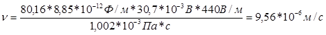 где er – относительная диэлектрическая проницаемость среды, e0 – электрическая постоянная (диэлектрическая проницаемость вакуума), η – вязкость среды, ζ – электрокинетический потенциал. Напряженность поля: